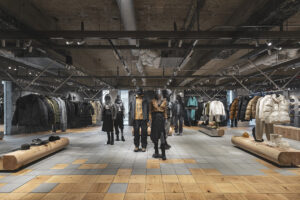 외관은 코너 입지의 특성을 살린 전면 파사드를 적용해 시인성과 주목도를 높였고, 내부 집기는 생목과 금속 소재를 함께 사용해 서로 다른 재질이 균형을 이루도록 설계됐다. 원목과 골재가 드러나는 콘크리트 질감을 활용한 절제된 마감을 통해 자연과 연결된 코오롱스포츠만의 해석이 담긴 공간을 완성했다.